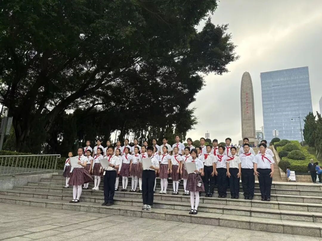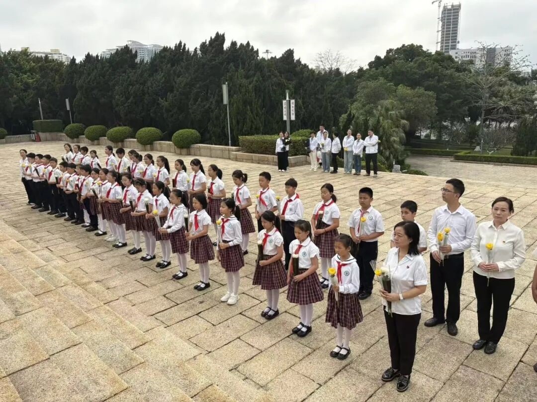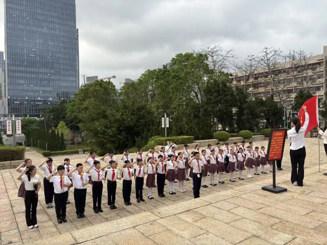 清明寄哀思,英烈永不忘。为深化爱国主义教育,传承红色基因,厚植少年儿童家国情怀,2026 年 4 月 2 日,百外春蕾小学德育处、大队部联合学校党支部,组织党员教师代表与优秀少先队员代表,前往深圳革命烈士陵园开展 “行走的思政课” 祭奠先烈主题活动。师生们以庄重仪式缅怀革命先烈,在沉浸式红色教育中汲取精神力量,让英烈精神代代相传。